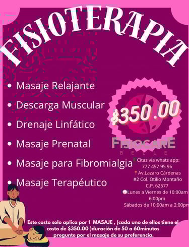 Ofrecemos terapia física, rehabilitación, masajes y drenaje linfático.